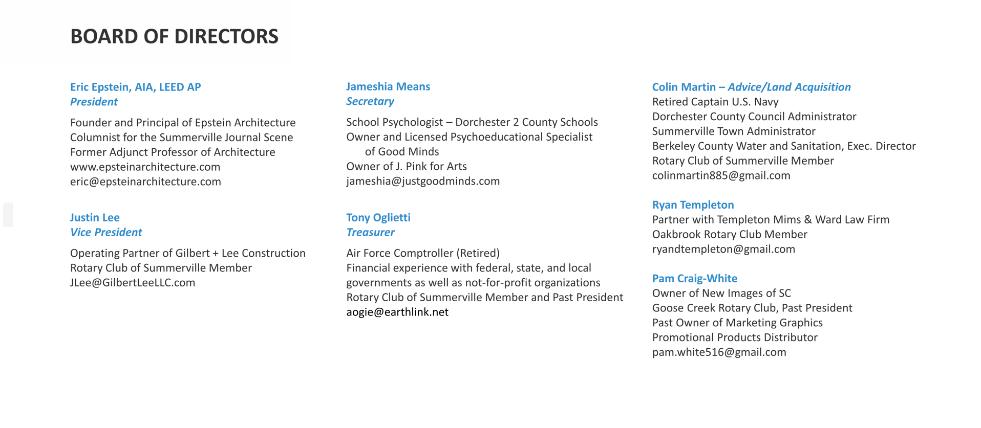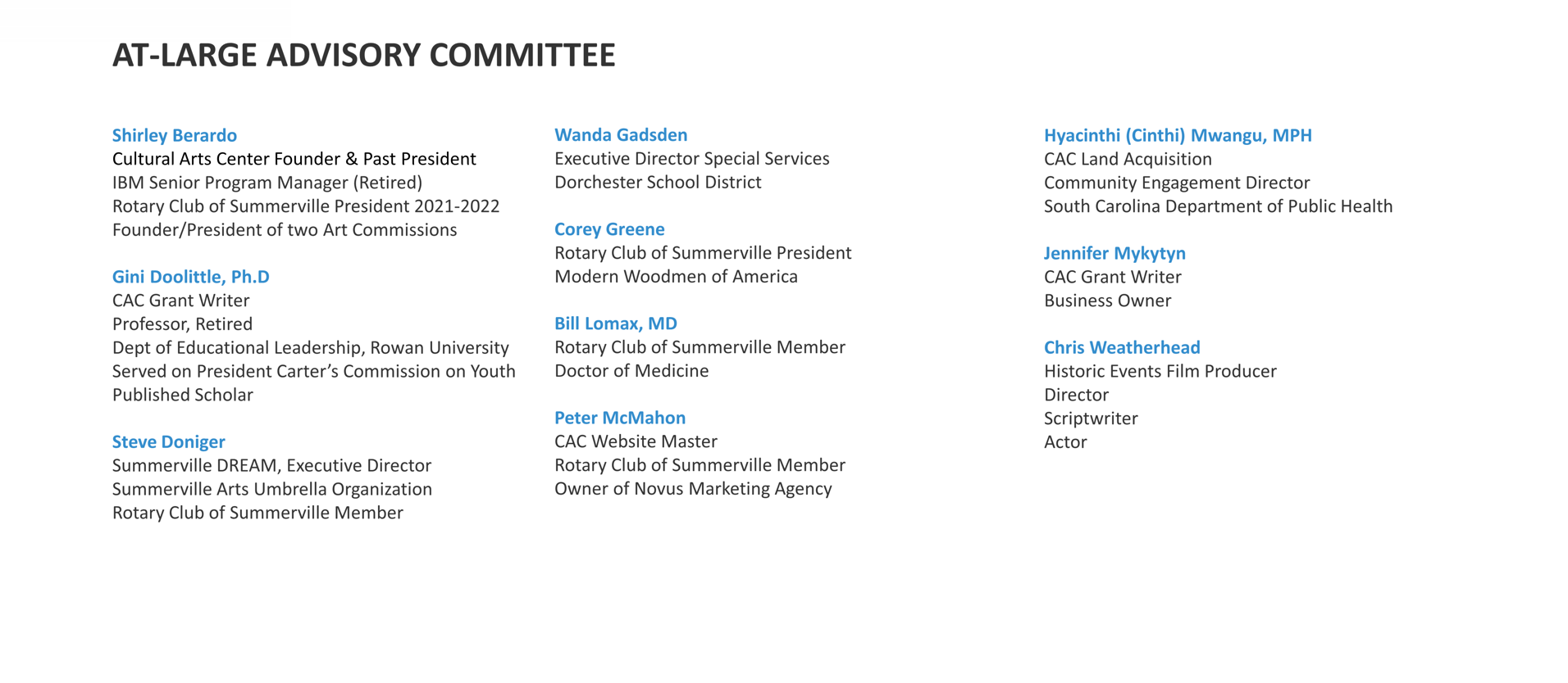 The Tri-County area has concentrated on developing housing and attracting industry. However, we also need to build our cultural human experience because cultural arts are vital to the heritage and fabric of our Lowcountry communities. At this time, over eighty organizations are excited to participate and augment their programs through partnerships and collaborations with the Cultural Arts Center when it opens.